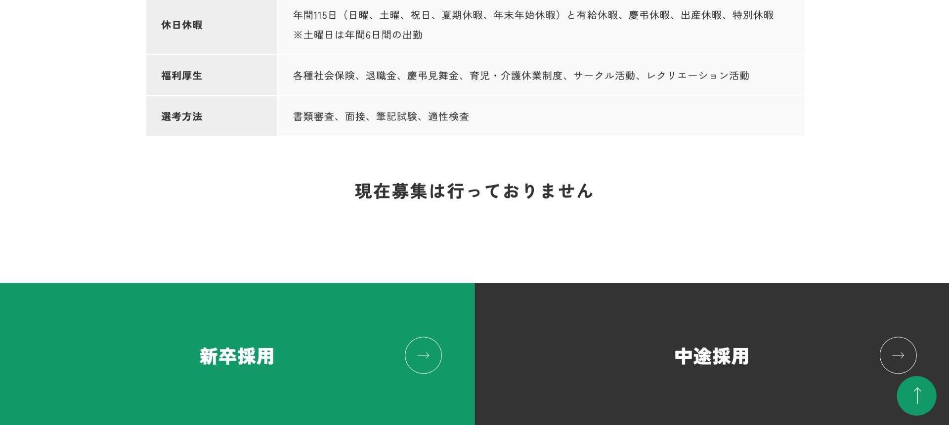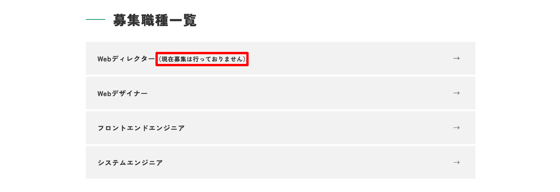 募集職種一覧にも「現在募集は行っておりません」と表示されます。