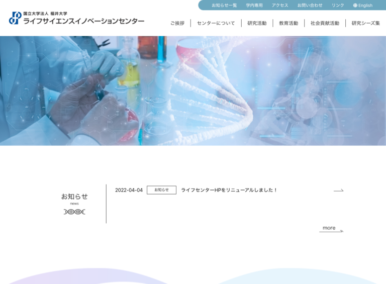 <blockquote class="wp-embedded-content" data-secret="JZUfl4iRX6"><a href="https://semi-colon.net/works/1494/">福井大学ライフサイエンスイノベーションセンター</a></blockquote><iframe sandbox="allow-scripts" security="restricted" src="https://semi-colon.net/works/1494/embed/#?secret=JZUfl4iRX6" width="600" height="400" title="“福井大学ライフサイエンスイノベーションセンター” — Web制作・Webマーケティング支援;セミコロン" data-secret="JZUfl4iRX6" frameborder="0" marginwidth="0" marginheight="0" scrolling="no" class="wp-embedded-content"></iframe><script type="text/javascript"> /* <![CDATA[ */ /*! This file is auto-generated */ !function(d,l){"use strict";l.querySelector&&d.addEventListener&&"undefined"!=typeof URL&&(d.wp=d.wp||{},d.wp.receiveEmbedMessage||(d.wp.receiveEmbedMessage=function(e){var t=e.data;if((t||t.secret||t.message||t.value)&&!/[^a-zA-Z0-9]/.test(t.secret)){for(var s,r,n,a=l.querySelectorAll('iframe[data-secret="'+t.secret+'"]'),o=l.querySelectorAll('blockquote[data-secret="'+t.secret+'"]'),c=new RegExp("^https?:$","i"),i=0;i<o.length;i++)o[i].style.display="none";for(i=0;i<a.length;i++)s=a[i],e.source===s.contentWindow&&(s.removeAttribute("style"),"height"===t.message?(1e3<(r=parseInt(t.value,10))?r=1e3:~~r<200&&(r=200),s.height=r):"link"===t.message&&(r=new URL(s.getAttribute("src")),n=new URL(t.value),c.test(n.protocol))&&n.host===r.host&&l.activeElement===s&&(d.top.location.href=t.value))}},d.addEventListener("message",d.wp.receiveEmbedMessage,!1),l.addEventListener("DOMContentLoaded",function(){for(var e,t,s=l.querySelectorAll("iframe.wp-embedded-content"),r=0;r<s.length;r++)(t=(e=s[r]).getAttribute("data-secret"))||(t=Math.random().toString(36).substring(2,12),e.src+="#?secret="+t,e.setAttribute("data-secret",t)),e.contentWindow.postMessage({message:"ready",secret:t},"*")},!1)))}(window,document); //# sourceURL=https://semi-colon.net/wp/wp-includes/js/wp-embed.min.js /* ]]> */ </script>